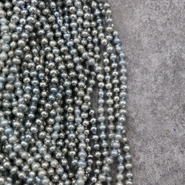 糸通しフランスヴィンテージ スフレビーズ ラウンド ブルーシルバー 約3x3mm【1本約45個】