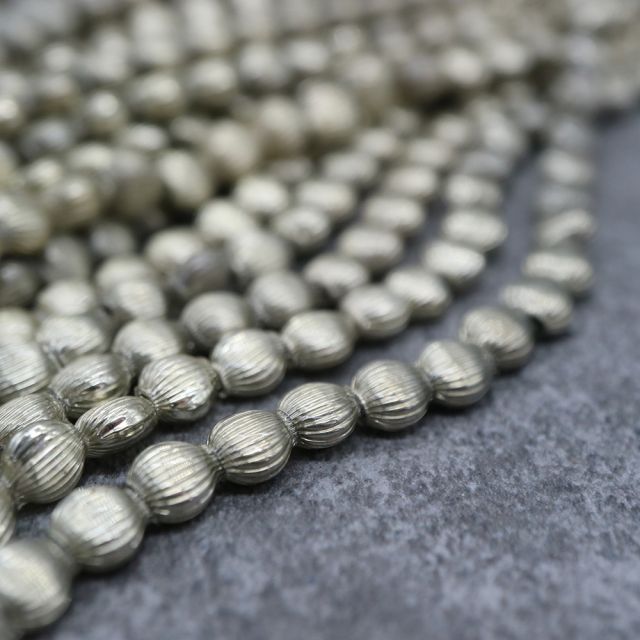 糸通しフランスヴィンテージ スフレビーズ フラットラウンド シルバー 約5x5mm【1本約18個】