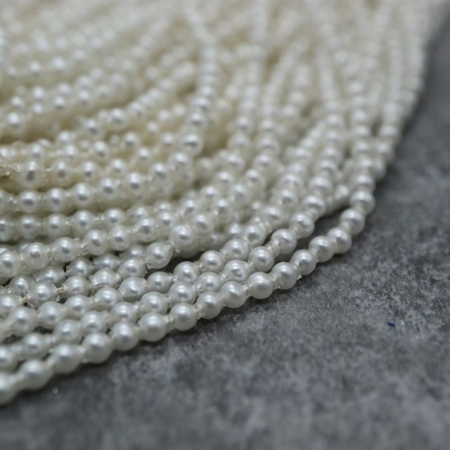 糸通しフランスヴィンテージ スフレビーズ ラウンド パールホワイト 約2.5x2.5mm 【1本約100個】