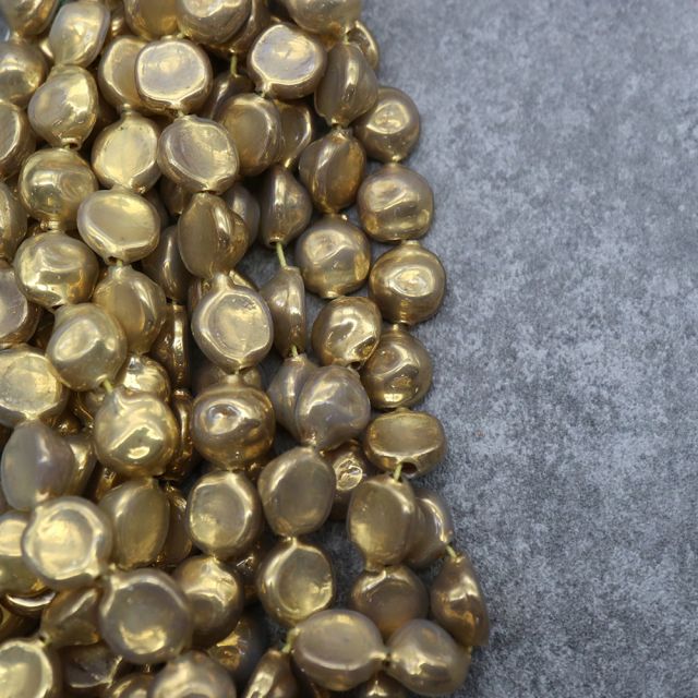 糸通しフランスヴィンテージ スフレビーズ ドーム ゴールド 約12x11mm 【1本約12個】