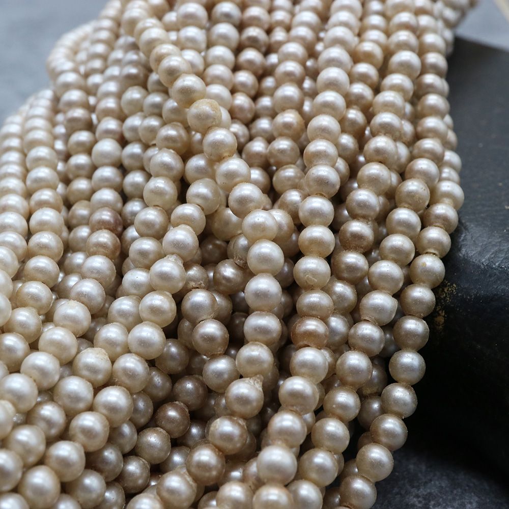 糸通しフランスヴィンテージ スフレビーズ ラウンド クリーム 約4.5mm 【1本約60個】