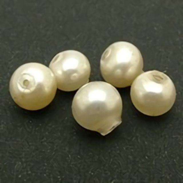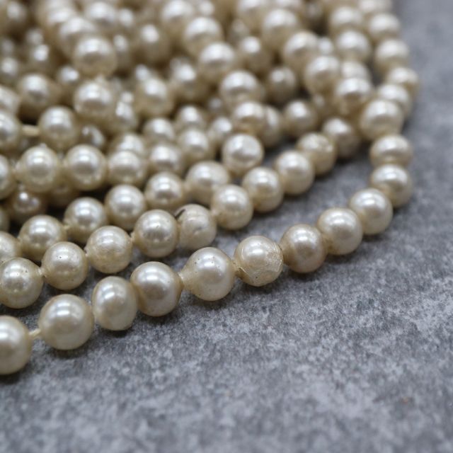 糸通しフランスヴィンテージ スフレビーズ ラウンド パールホワイト 約5-6mm 【1本約50個】