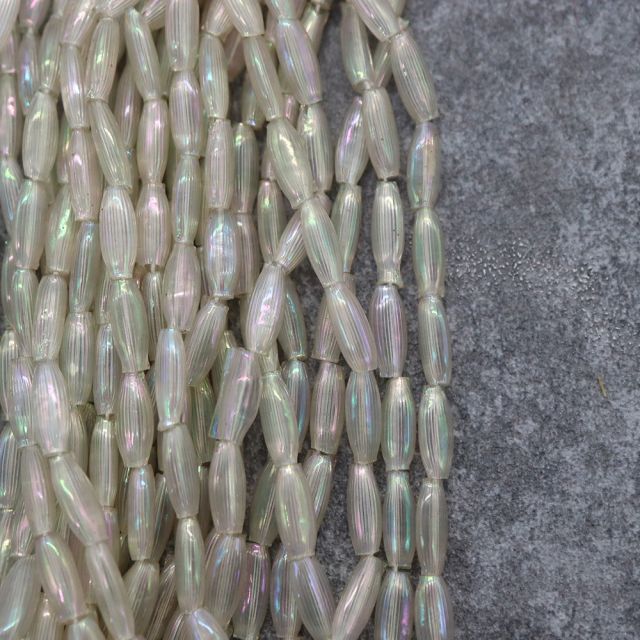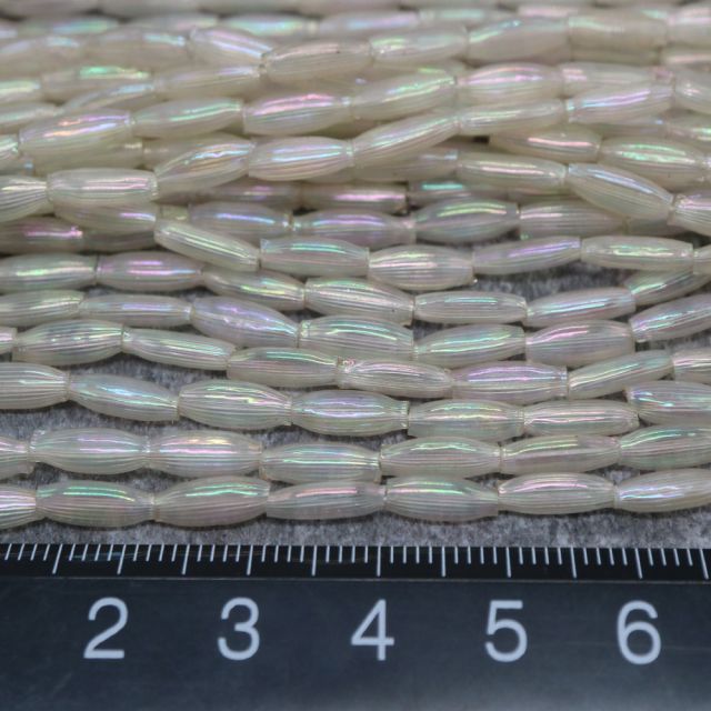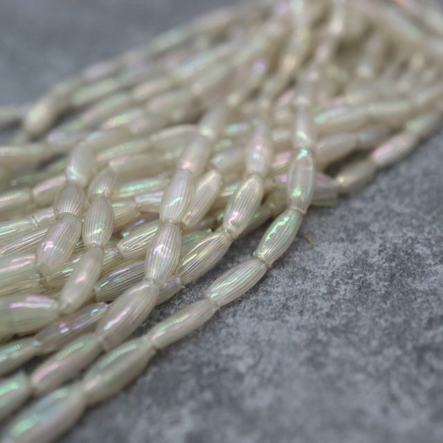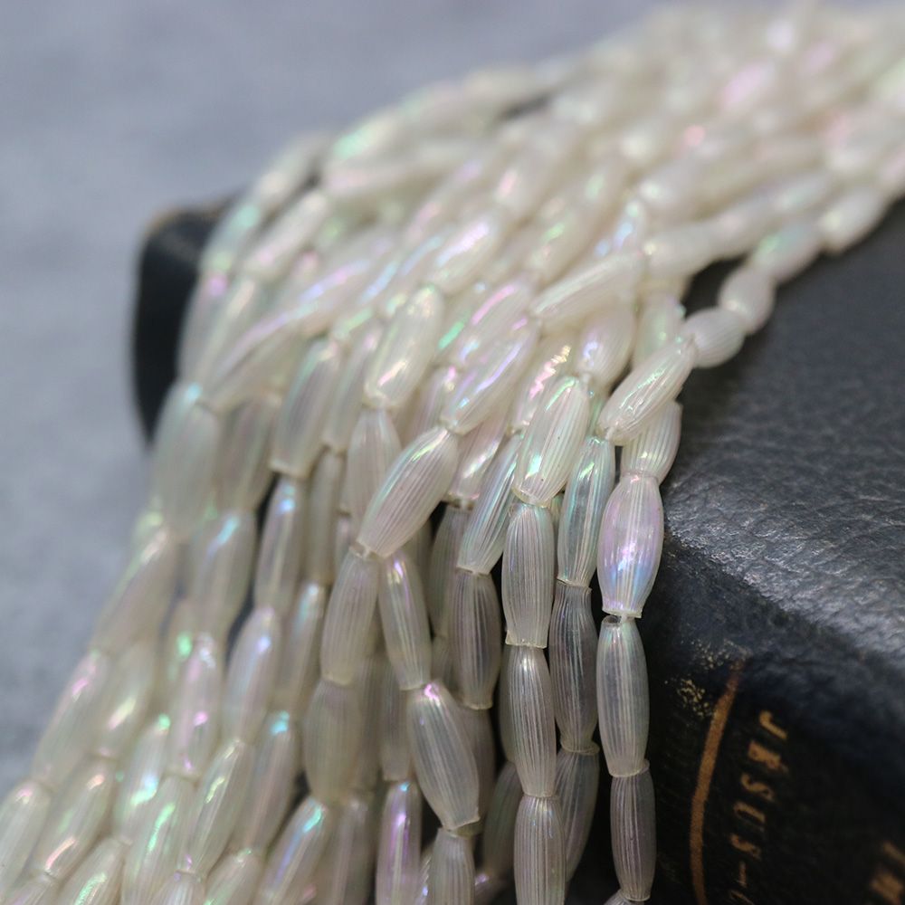 糸通しフランスヴィンテージ スフレビーズ ナツメ クリスタルAB 約9x4mm 【1本約30個】