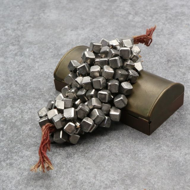 糸通しフランスヴィンテージ スフレビーズ キューブ シルバー 約7x7mm 【1本約10個】