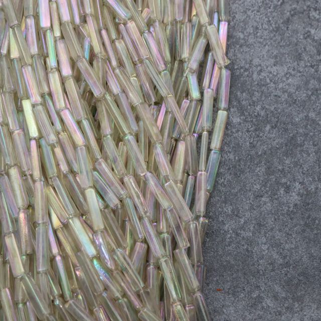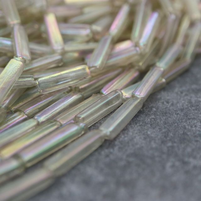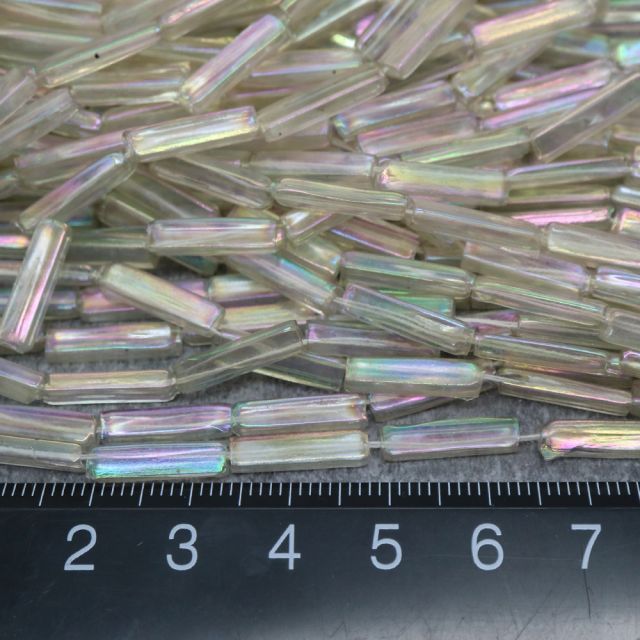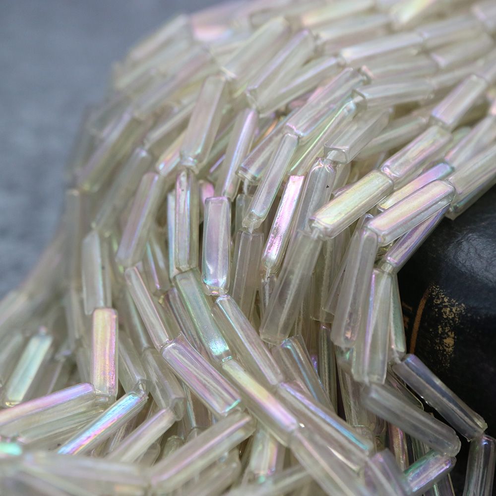 糸通しフランスヴィンテージ スフレビーズ レクタングル クリスタルAB 約14x2x3mm 【1本約24個】
