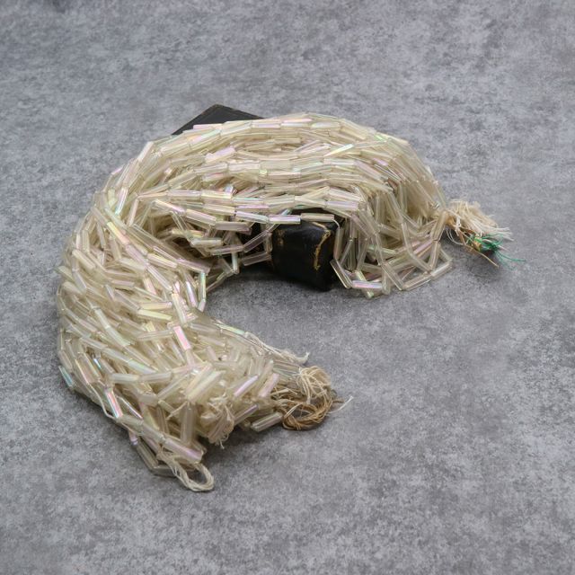 ドレスやバッグ、帽子などに軽量な装飾素材が求められた時代、スフレビーズは軽くてコストと見栄えのバランスに優れていたため多用されました。