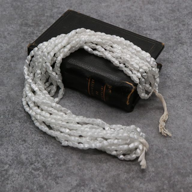 ドレスやバッグ、帽子などに軽量な装飾素材が求められた時代、スフレビーズは軽くてコストと見栄えのバランスに優れていたため多用されました。