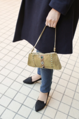 右のクラッチは、なんとよ~~く目を凝らして見ると、ビーズ刺繍の模様に